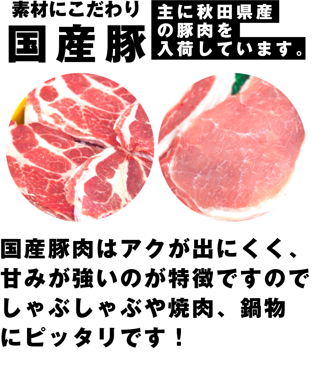 国産豚の特徴は、食感も柔らかく外国産に比べると脂身にコクがあり、旨味がじわっと出てきます。